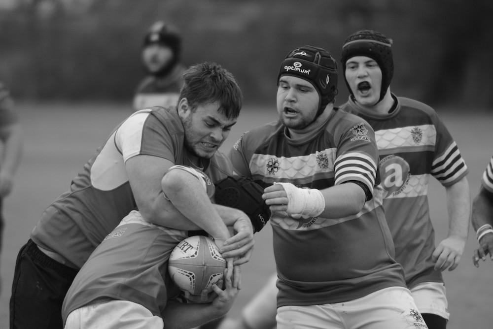 The thing about the second team, is that a large part of its remit is to supply warm bodies to the first team. So if someone pulled out a particularly impressive performance during a game, then there was a very decent chance that they’d be gone the next week – “not scoring tries for us, keeping a bench warm in case they get an injury” as one of the senior members put it. The other thing is that other Universities have seconds teams as well. They also have thirds, fourths, fifths….in fact sevenths and indeed eighths are present. And, as you’ll have worked out, any University with eight Rugby teams is liable to take its Rugby pretty seriously. And while I can’t say a bad word for my own Alma Mater, they don’t have eight rugby teams – nor do they offer undergraduate degrees in Rugby Science, they don’t have an indoor 3G pitch, their staff does not include a sports nutritionist and they do not enjoy official links with professional teams. The opposition have most of those things, and they show on the scoreboard. The victories were rare, and things to be cherished. But the pictures I took I treated in monochrome. The opposition, their colours muted, were not true opponents. The opponent was the game, the set of rules that made the match. The portrait shots are of people far gone in anger and frustration over the last few inches they can’t push forward, or the kick that went astray by a foot.
