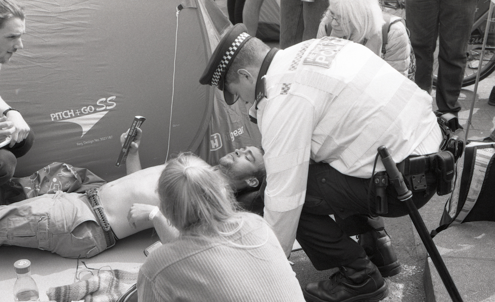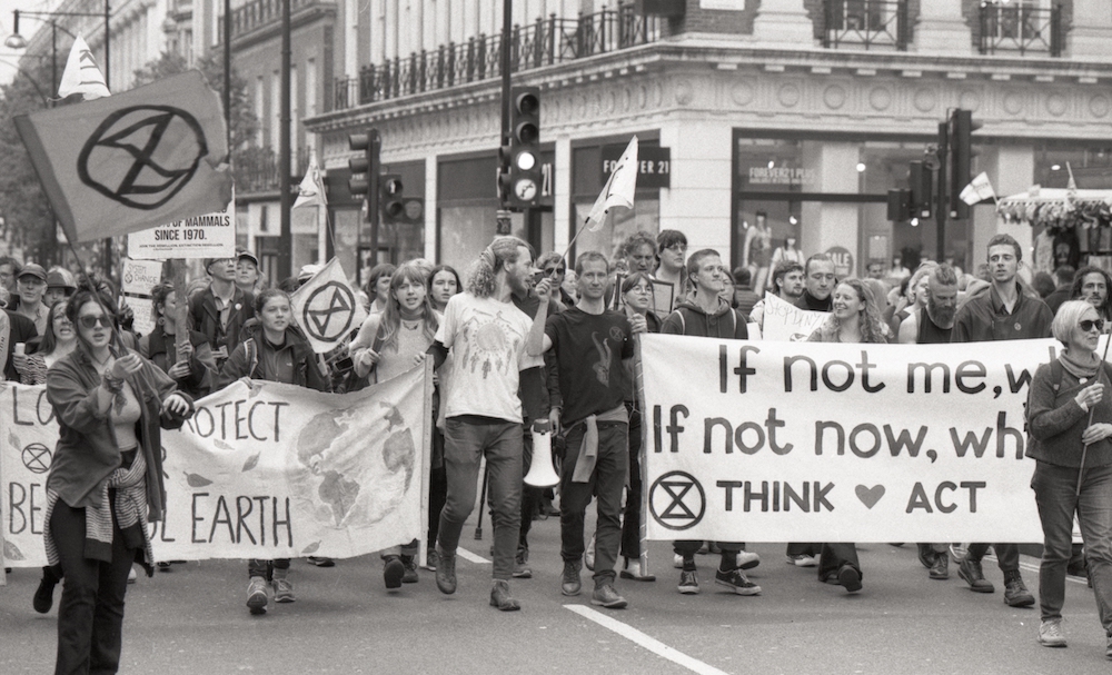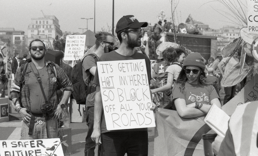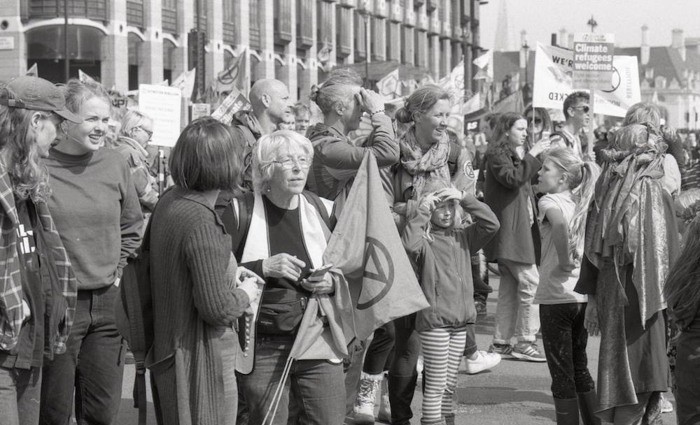 And as we return to our even keel, I’ve been shunning the healthy light of day to vanish into the darkroom and develop the the backlog of film that’s been awaiting my attention. Which is how we find ourselves travelling backward in time to a sun drenched London in April of this year, with photography of Extinction Rebellion’s protest.