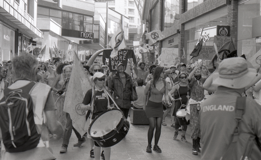 You might have read my last post, where after a few weeks I’m developing the film from the Extinction Rebellion Protest. Well this week we’ll look at something a little more recent: The XR52 Protests in Bristol on the first of June, which I’ve been developing this week. Almost exactly a month ago, Extinction Rebellion descended on Bristol to protest the environmental impact of the fashion industry. Now that my semester two assessments are in the rear-view, I’ve finally found the time to process the backlog of film!
