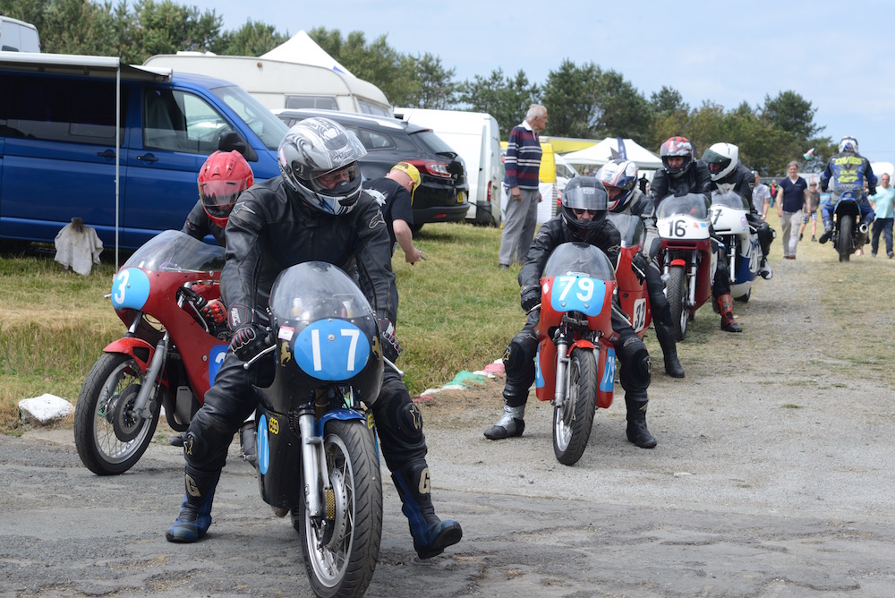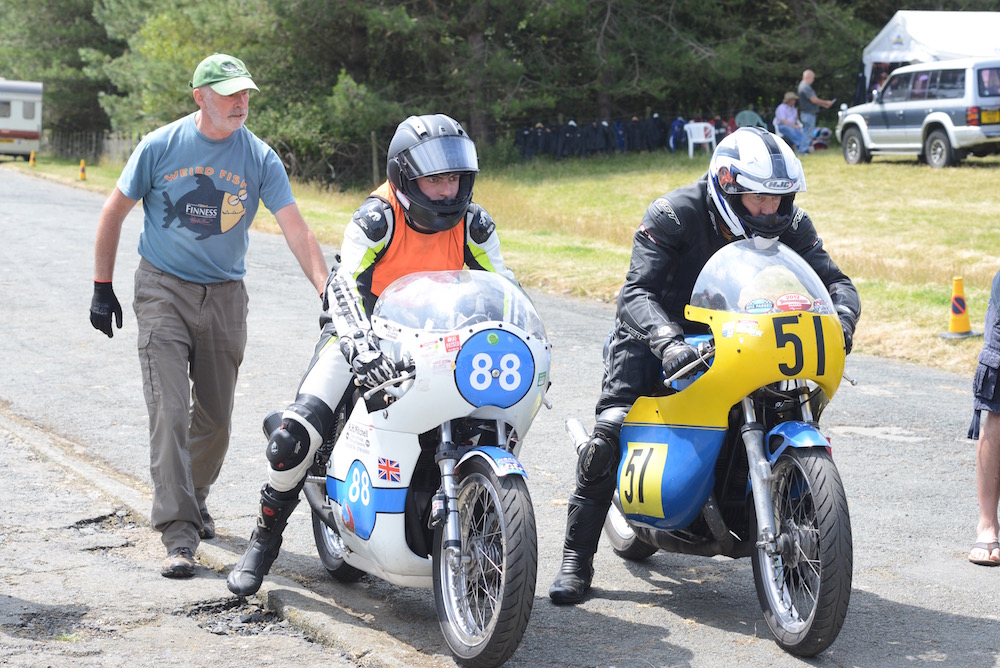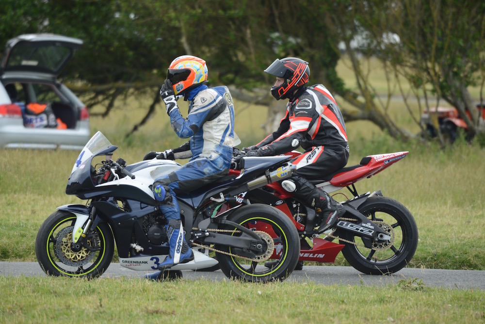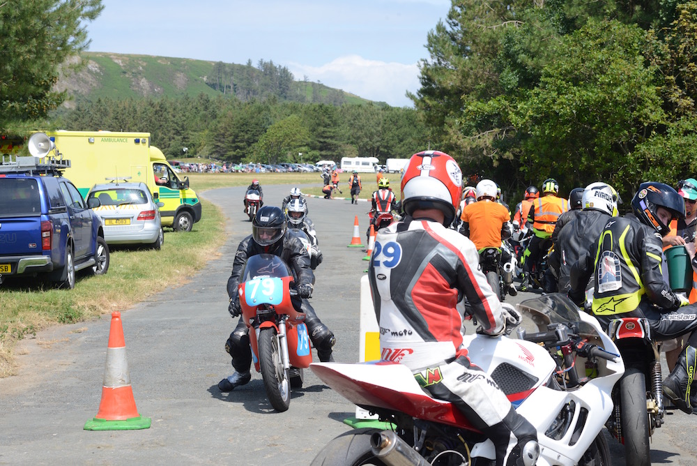 The phrase pit lane makes me think of F1 crews doing lightening tyre changes, but in these parts it’s a little more prosaic. It’s the road leading from the paddock to the track, where one group come off and the others go on. The riders are called for the race, wheel or ride their bikes from the paddock, check in with the marshals and line up ready to go onto the track. It’s also adjacent to the burger van, the display tents, the toilets and the campsites, so it’s open to the public. Stay out of the way and it’s a great place to get up close shots.