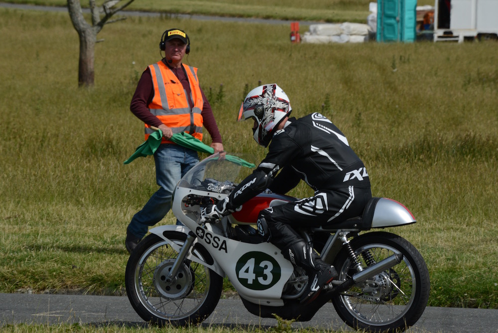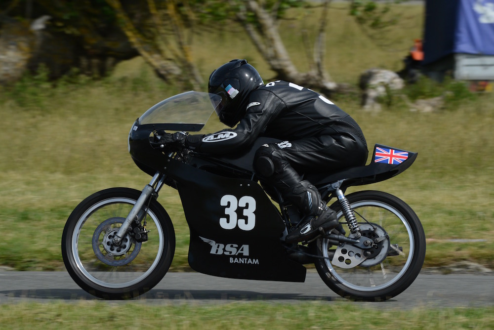 Anyway, I moved a few feet, took some shots – action stuff, panning the camera to focus in on the riders and blur out the background to show the speed they were traveling. Super sports were the first class out of the gate – thirteen classes running, grouped into seven races with each race run three times through the day. Second up, and among my personal favourites was Classic 125-250cc single cylinders. That’’s partly for aesthetic reasons – the bikes all had a slightly different look, and an antique one at that (and I made sure to get a good shot of the BSA Bantam for for my Grandad’s benefit). That aside, the noise of sixteen (plus the two 50cc bikes) single cylinder bikes being raced is something unique.