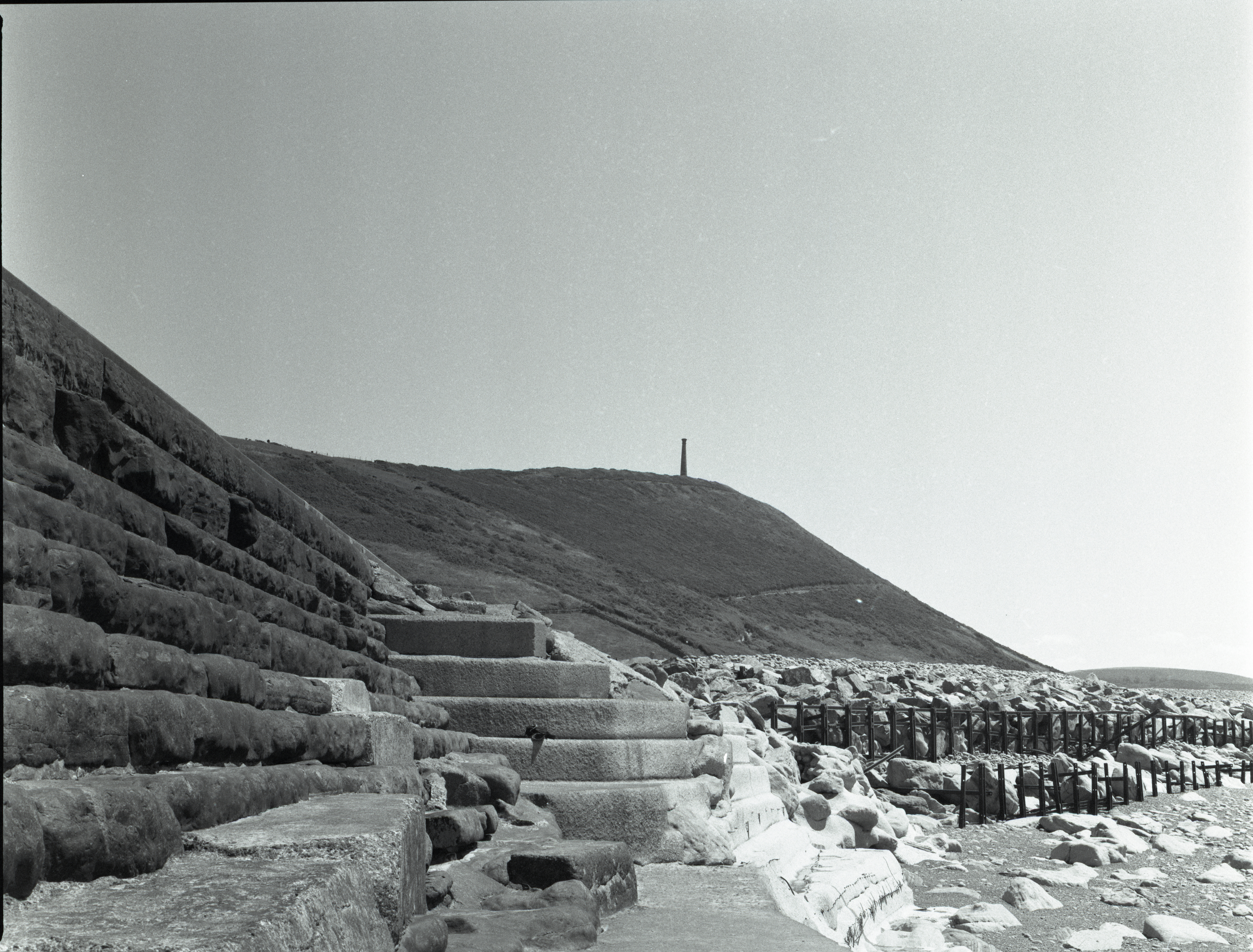 And then, then you develop it. I’d loaded the beast with Ilford HP5 Plus, on the basis that I’ve developed plenty of that over the last six months, and therefore there was less chance of me screwing up that part of the process. The film’s exactly the same as the 35mm stuff, just a little larger, and is developed in an identical chemical process. The real fun part comes at the end of that process when each individual frame is revealed to be the size of a small playing card. That’s where the spectacular image quality comes in. I held the roll of developed film – and being shorter and wider than 35mm it was easier to handle – up to the light and stared at it. After the initial test roll in my parents back garden I’d taken camera and tripod down to the local beach and pointed it at wave-worn rocks, corroding sea defences, lighthouses and all that other stuff. I’d spent some time there last summer, taking the pictures for a long series of long-exposure work on the local coast, and the layout and the vistas were an old story that I was reading through fresh eyes.