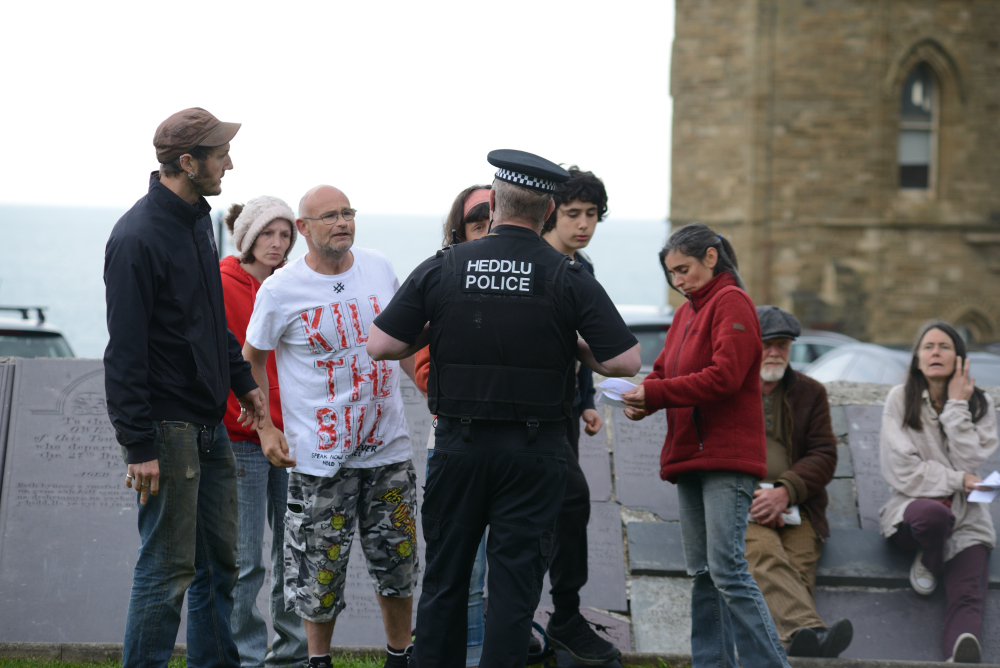 Each time I write up one of these things I spend a little less time describing – that’s not because they’ve gotten less interesting, it’s because they all follow the same rough format. They all begin at the town clock tower, march down the high street, make their way to the promenade and end in a public park where there’ll be speeches. It’s hard to write this more than once and make it sound different. It was though. The banners had changed. So had some of the faces. Others had stayed the same – the banner at the front of the parade has been at all three of these protests that I’ve seen (and probably the one I missed).