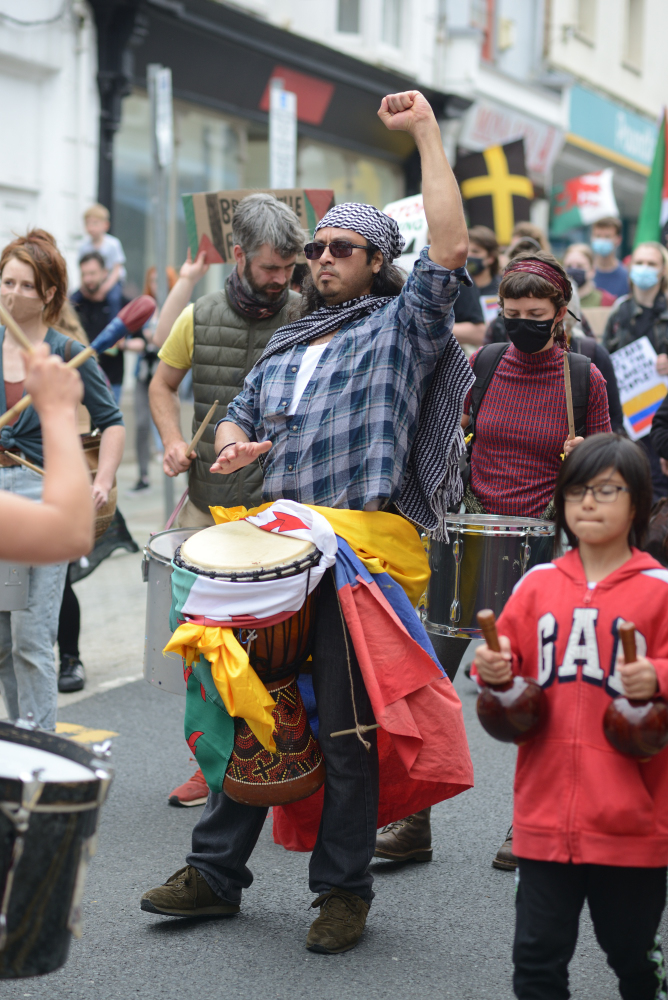 The current season, with its minor easing of lockdown, has led to quite the series of protests in the little town where I make my home. Wile it’s all under the umbrella cause of opposing the current policing bill (a cause which anyone with a cause to protest will almost automatically turn out for), there have been other protests under the same flag. The first protest I photographed was against the policing bill. The second was the policing bill and Black Lives Matter, with a sprinkling of May Day labour banners. Today it was “Solidarity With Palestine”, “Solidarity With Colombia” and while we’re at it “Kill The Bill”.
