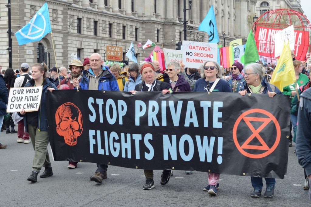 As days of protest go, a pretty low-key one. Which I suppose was the point. I did wonder when I read the announcement of this protest whether it signalled a larger shift – whether the shift away from the disruptive tactics that have characterised the movement so far might mean that XR as I’ve known it wouldn’t be around much longer – either changing a great deal, or perhaps dividing along some other set of lines. But as I write this on Tuesday the 25th, the four days of protest over and everyone home, that’s a question that remains to be answered. XR’s press release indicates that there may yet be more to come (https://extinctionrebellion.uk/2023/04/24/the-big-ones-message-to-the-government-you-had-your-chance-now-were-stepping-it-up/ ), and while I won’t read the whole thing back to you it would seem that the future use of disruptive tactics isn’t off the menu just yet. And with XR claiming attendance of 60,000 people (which from the numbers I saw on one day does not seem unreasonable)