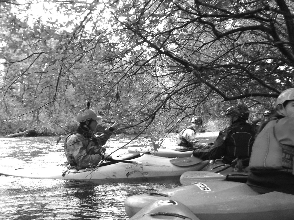You’ll notice that my examples are in black and white. Most of my kayaking pictures are, and for that matter so is most of my work whether that’s film or digital. What I am photographing, mostly, is the people I am with. When I photograph people I am after pose, posture, expression, all of the things that colour will distract from. Which is unfortunate, because there’s plenty of colour. Kayaks come in a psychedelic array of reds, greens and oranges and kayakers come decked out in something similar in order to make them visible – it gives the Coastguard a convenient way to find the bodies. That’s why I’m working in black and white, at least for the moment.