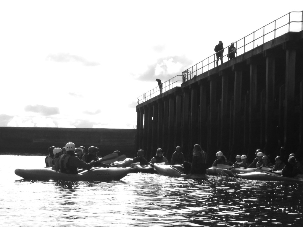 The major differences? Legroom for a start. I’m not a massive individual, but a long-legged six footer folding himself into a kayak is a feat somewhere between yoga and origami. Sorted that out. And then the real difference – direction. A Longboat – long and pointy with a reasonably deep hull, and propelled by two hours per side all pulling at once – will tend to keep on in a straight line. Yes it will need steering, yes the tide flow and the wind will alter your direction, but you’d need to work really quite hard to make one spin through three hundred and sixty degrees without meaning to. Not so much with a kayak it turned out. That manouverability that allows them to shoot rapids and turn on a sixpence requires a lightness of touch and constant attention – not only to what you’re doing but to what the water’s doing.